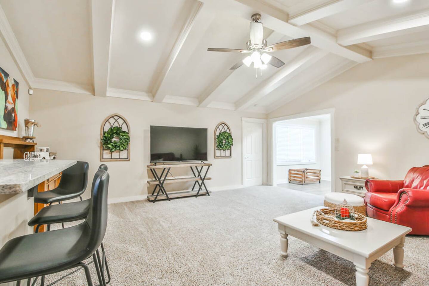 Step inside and be greeted by a warm and inviting ambiance that will make you feel right at home. The living area is beautifully furnished, providing ample seating for everyone to gather around and create lasting memories. Relax on the comfy sofas, unwind after a day of exploring the hub city, or enjoy a movie night on the large flat-screen TV. Our fully equipped kitchen is a chef's dream, featuring modern appliances, spacious countertops, and all the essential cookware you need to whip up delicious meals. The adjacent dining area is perfect for sharing hearty breakfasts or indulging in home-cooked dinners together. When it's time to rest, retreat to one of the three comfortable bedrooms. Each room boasts cozy beds with soft linens, ensuring a restful night's sleep. The master bedroom comes with a luxurious en-suite bathroom, providing added privacy and convenience. The highlight of our home is its prime location. Nestled in the medical district, you'll have easy access to renowned medical facilities, making it an ideal choice for medical professionals visiting the area. Moreover, anyone visiting the great Texas Tech University will certainly appreciate the short 2.6 mile drive to get you to Jones Stadium for a football game or to the United Supermarkets Arena for graduation. Also, nature enthusiasts will love the proximity to Maxey Park, where you can take leisurely strolls, have picnics, or enjoy the children's playground. If you're looking for some outdoor fun closer to home, our backyard oasis offers a private retreat. Relax on the patio furniture and let the kids run around and play freely in the fenced yard. For those with a vehicle, our two-car garage ensures safe and secure parking, giving you peace of mind during your stay. Whether you're here for business or pleasure, our home is the perfect base for exploring all that the area has to offer. Come and experience the comforts of our 3-bedroom, 2-bathroom haven in the medical district, where convenience and relaxation intertwine to create an unforgettable stay. Book now and let us be your home away from home!