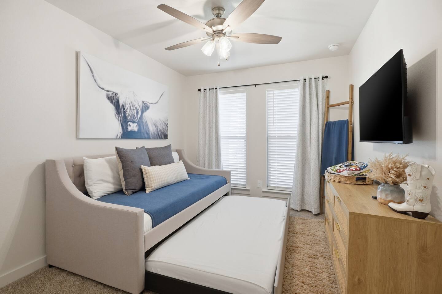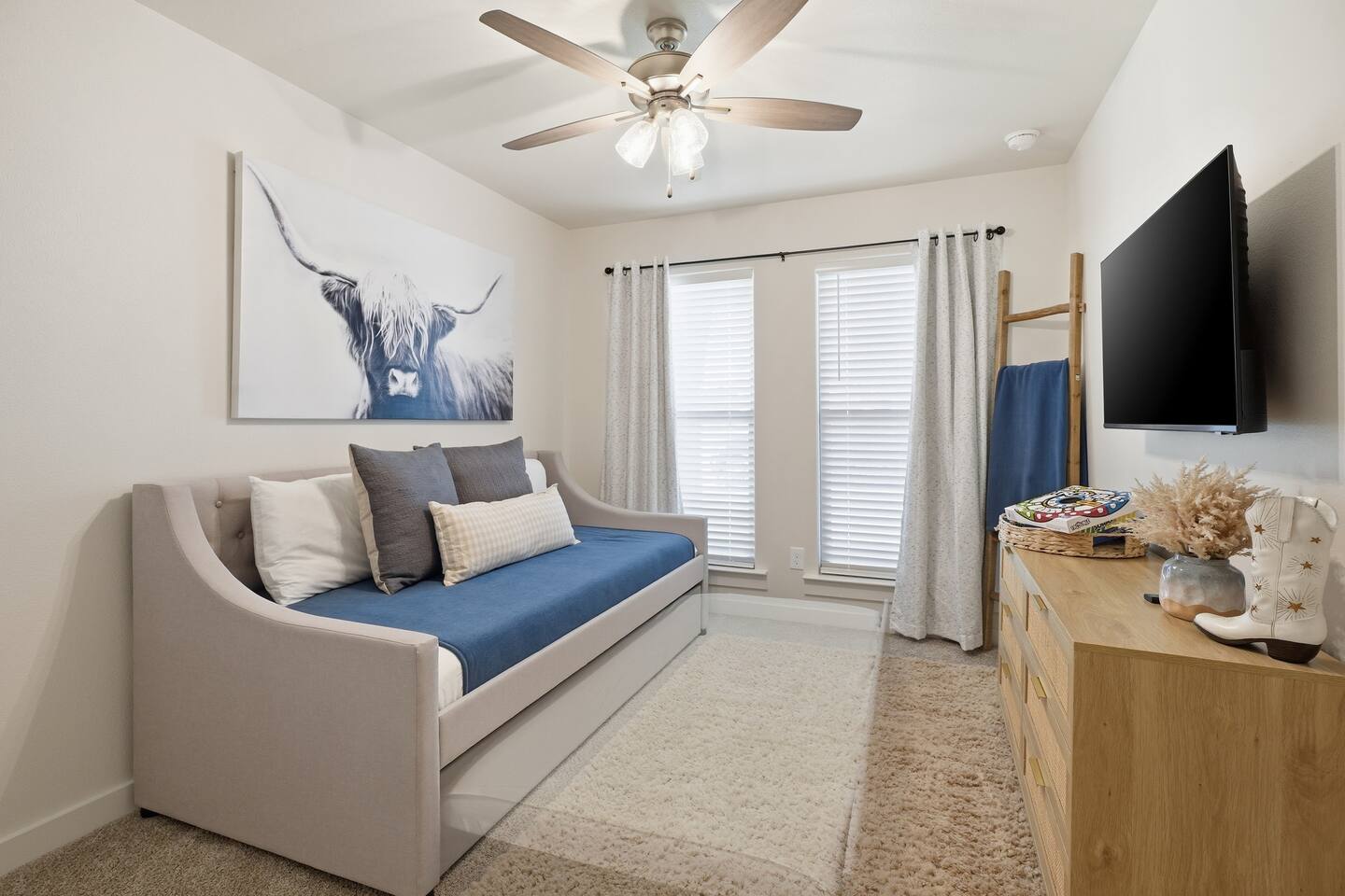 Have fun with the whole family at this stylish place. Only 10 minutes from campus, but in the heart of restaurants and shopping. Nestled on a culdesac for a quiet stay.