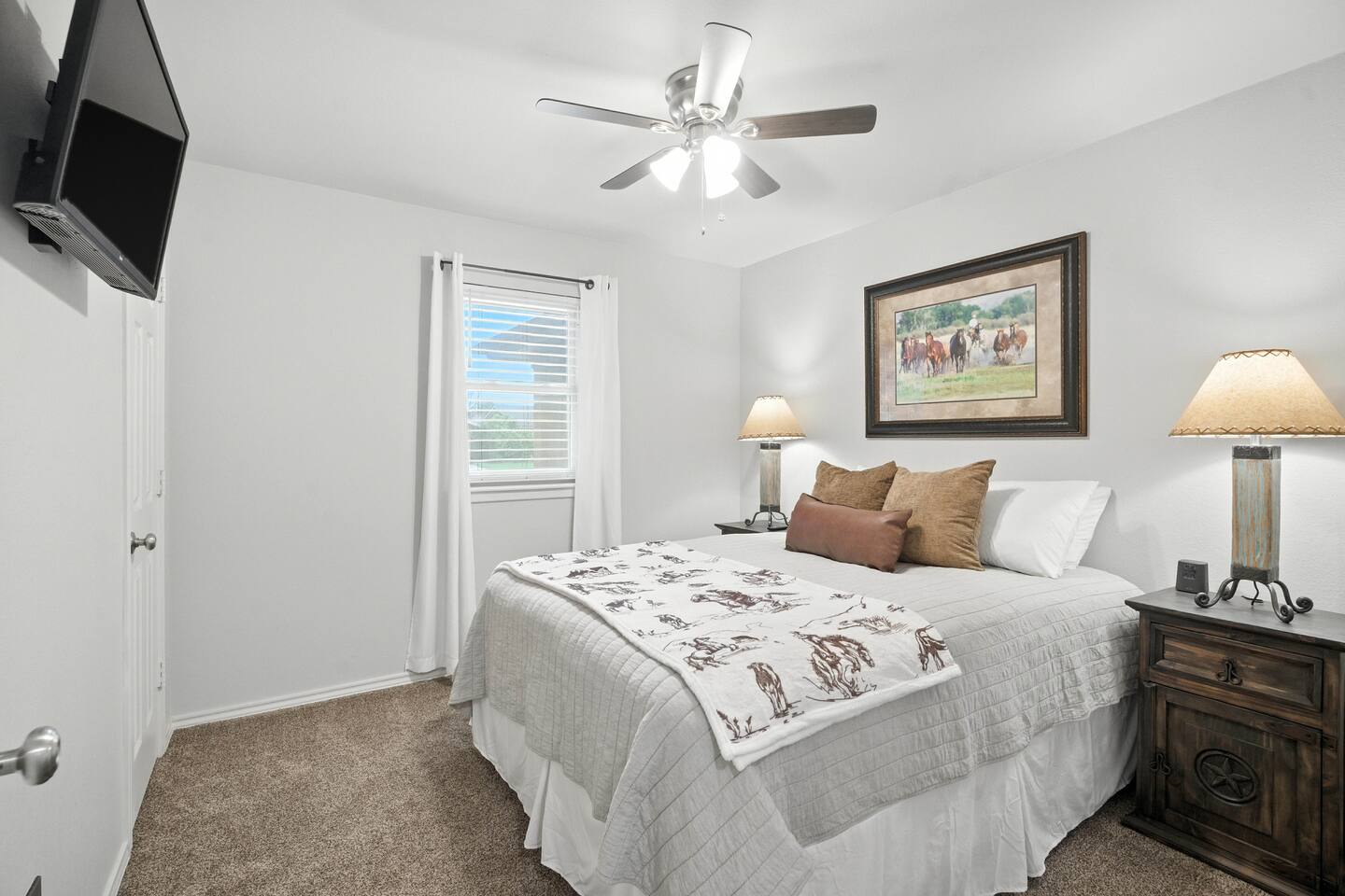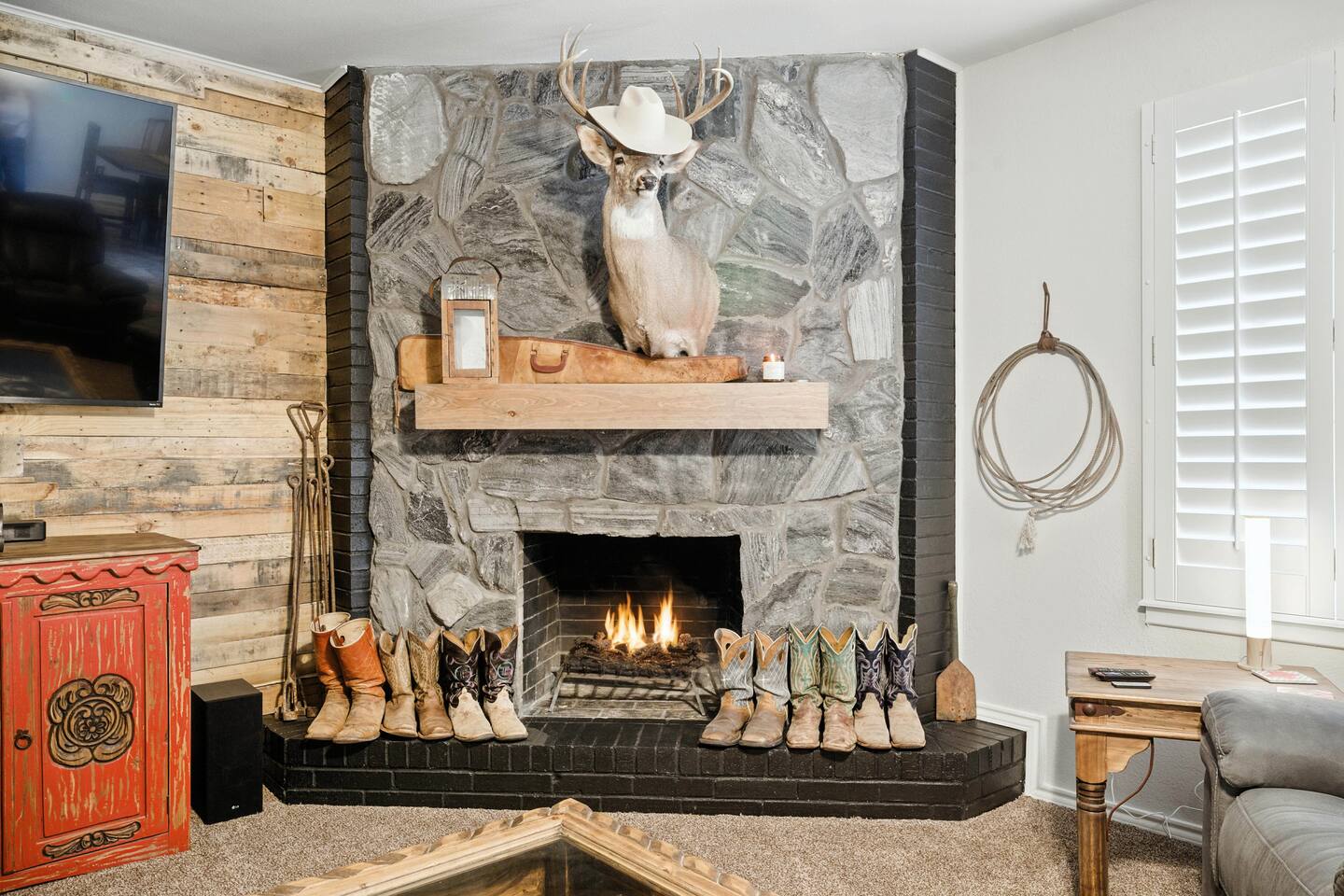 The Raider Rambler 🤠 This country-cozy retreat has all the charm: boots, antlers, a crackling fireplace, and a backyard perfect for relaxing under the stars. Immaculately clean and incredibly comfy, it’s the kind of place that feels like home—just with a little more Texas flair. 🌵🔥 Book your stay today & experience laid-back Lubbock living at its finest!