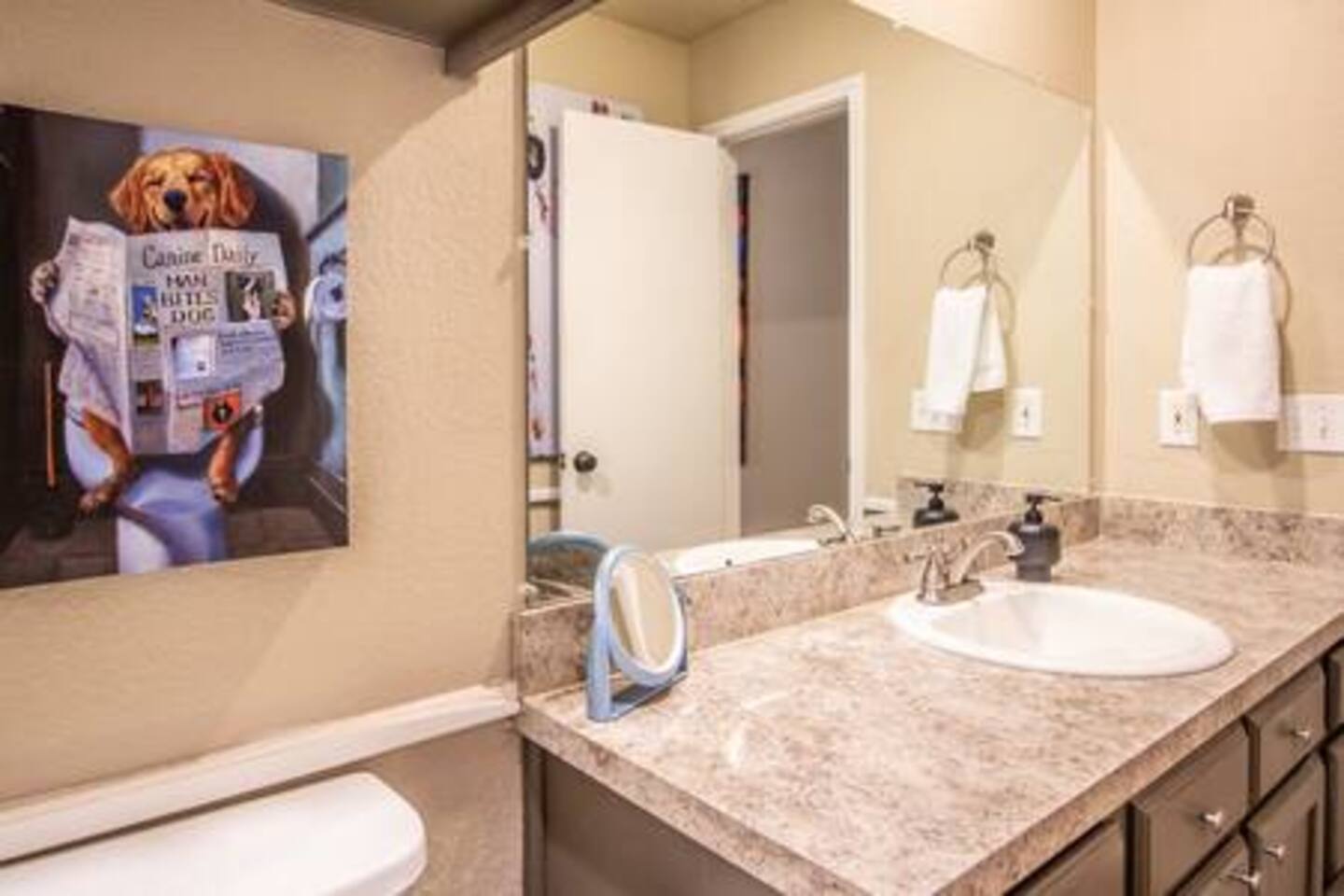 We welcome our furry, four legged guests too but we DO have a $100 non-refundable pet fee. We also ask that you keep them off the furniture as much as possible and clean up after them in the yard!