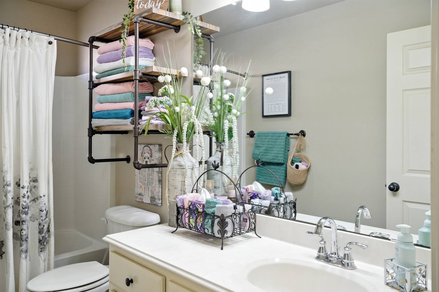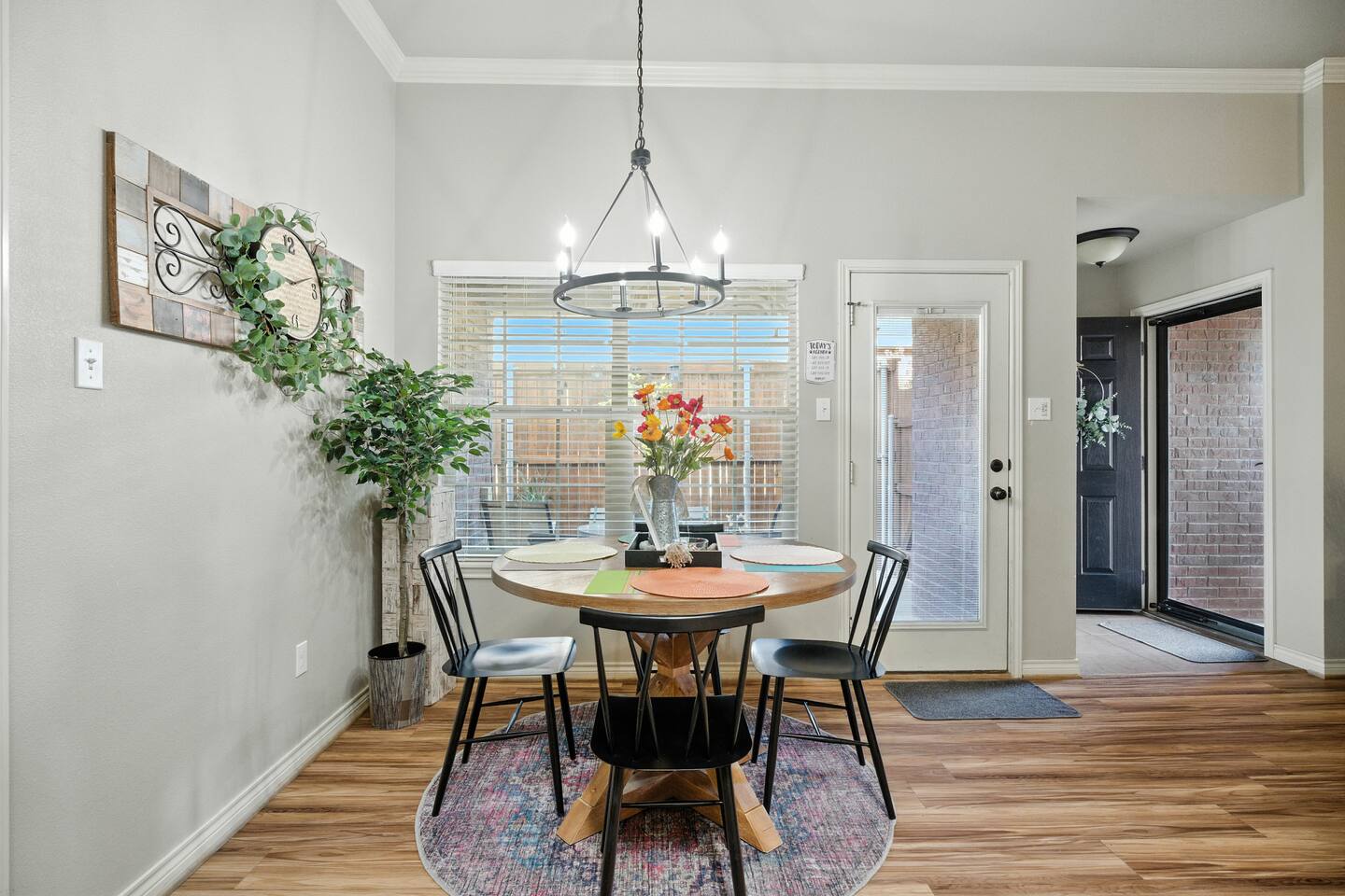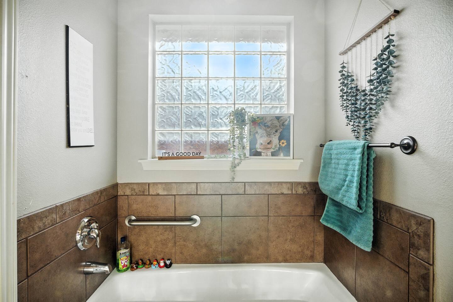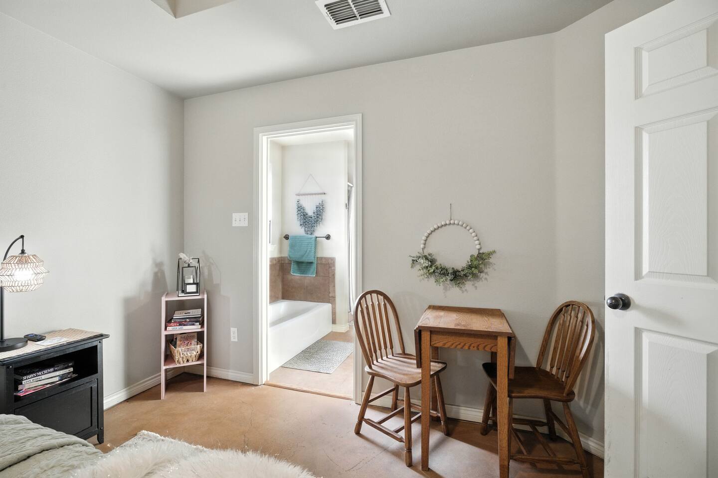 The space includes an open living & stocked kitchen including Keurig & coffee pot. Enjoy leather reclining sofas, smart TV and unlimited WIFI. The master bedroom is isolated and has a king size bed and smart TV. The master bathroom contains a luxury bathtub for soaking after a long hard day as well as a separate shower. There are 2 more bedrooms and a guest bath. One bedroom contains a queen bed and desk / work station. The 3rd bedroom has a comfy futon sofa / twin bunk bed. This garden home can comfortably sleep 6 to 7 guests. The utility room includes a washer / dryer and there is a 2 car rear entry garage available. The backyard & side patio are ideal for enjoying a morning cup of coffee & evening Chilton with the West Texas sunset. It's the perfect spot for your furry friends to stretch & fetch.