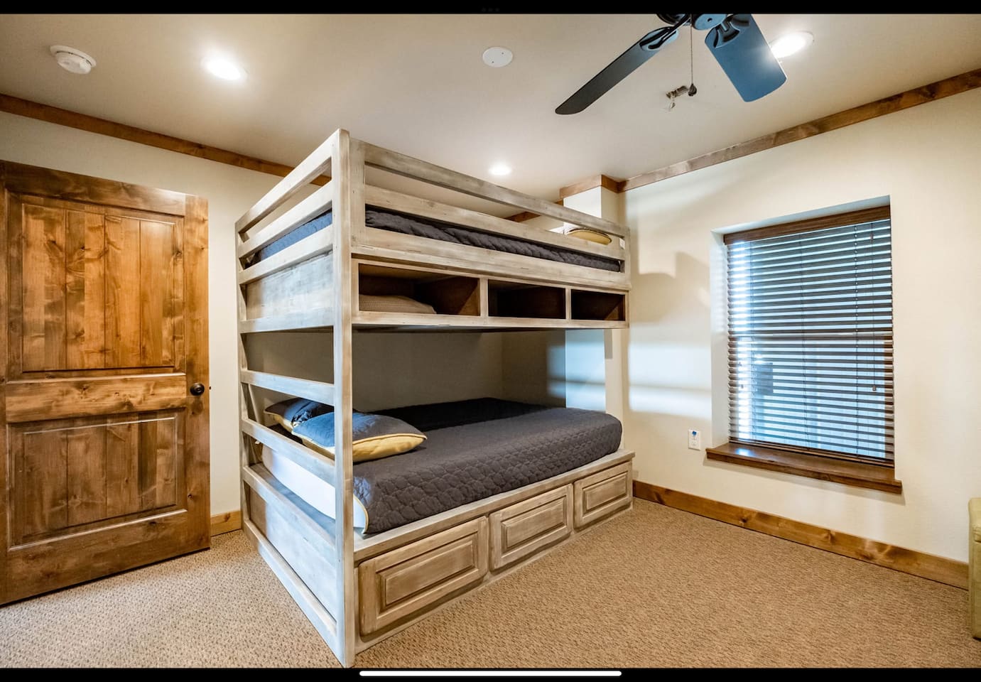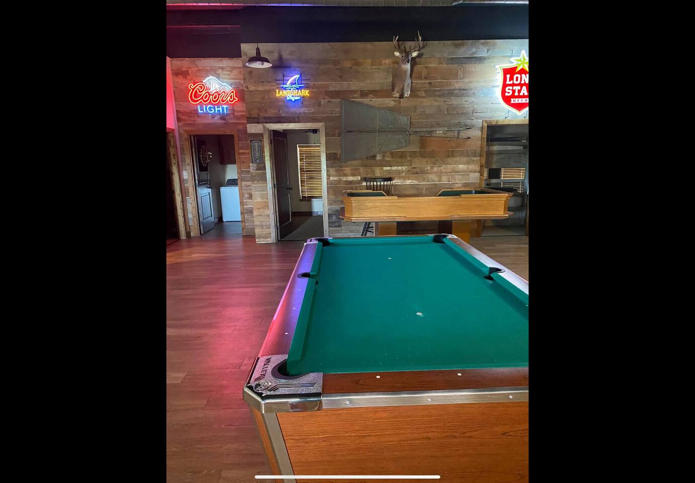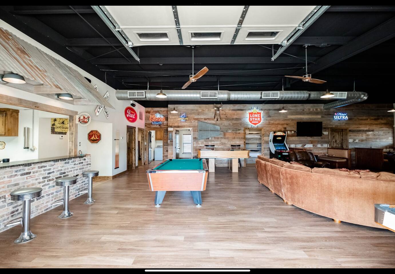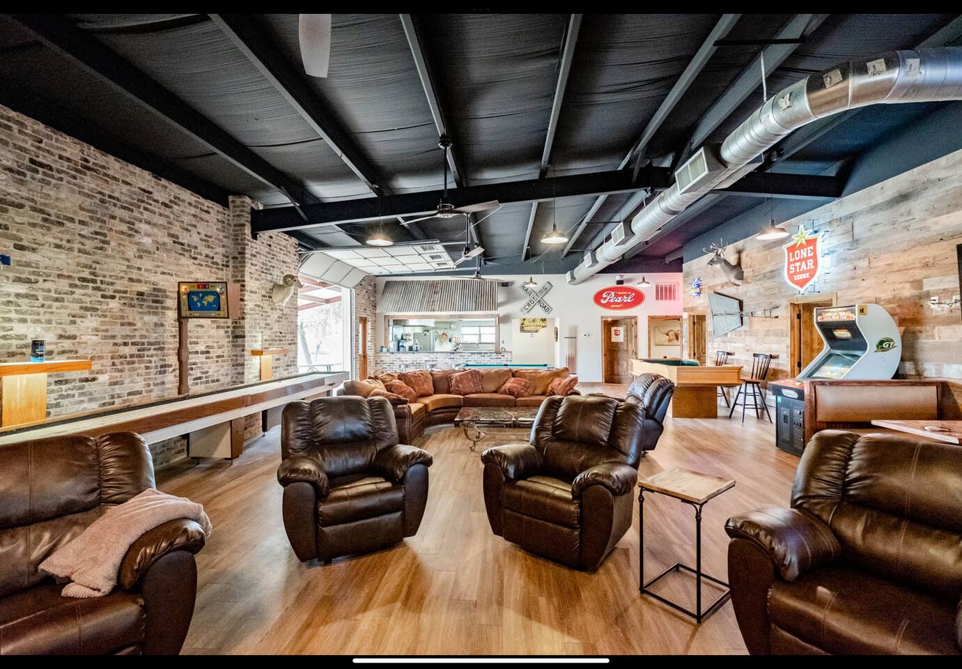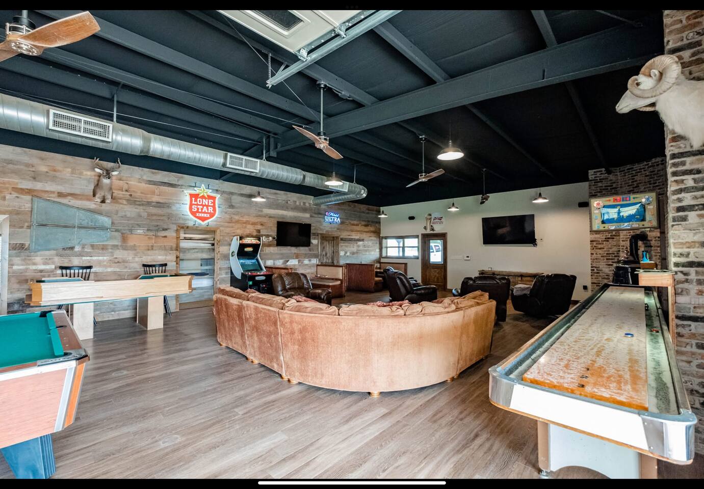 The Space: Inside the lodge you’ll find a huge entertainment area and plenty of room for your entire group. The open layout makes it easy to hang out together while still having space to spread out. Features include: • Massive game room for group entertainment • Commercial-grade kitchen perfect for cooking big meals • 7 flat-screen TVs throughout the lodge • Large open gathering areas • Comfortable sleeping spaces for groups • Authentic Texas lodge atmosphere Outdoor Area: Step outside and experience the best part of West Texas evenings. Relax under the big Texas sky and gather around the outdoor fire pit, the perfect place to unwind after a long day on the lake. Location: The lodge is located just minutes from Lake Alan Henry, making it an ideal home base for: • Fishing trips • Boating and lake days • Group getaways • Family reunions • Corporate retreats Enjoy the peaceful surroundings while still being close enough to the lake for a full day of adventure. Whether you're planning a relaxing lake escape or a fun group adventure, Woody’s Roadhouse Lodge offers the perfect combination of space, comfort, and Texas hospitality.